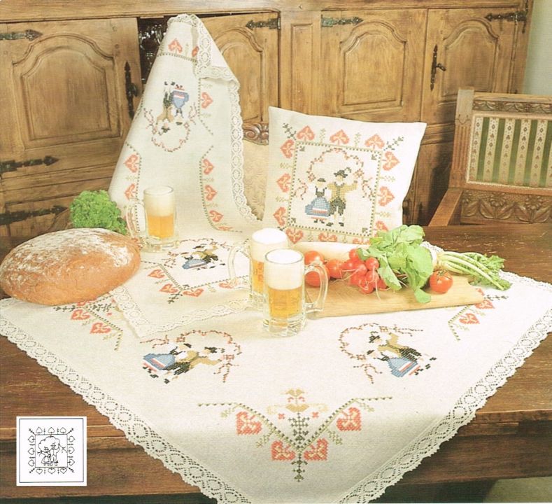 FHA 9078.A4040 Ki Kissen Trachtenpä. Vorgezeichnet 40x40 cmKreuzstich, Stoff "Donau", sand, 62% Leinen 38% Baumwolle