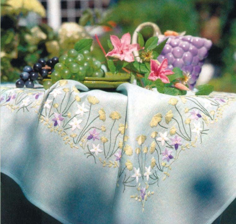 FHA 9609.C9090 Kleeblatt Tischdecke Komplett-Stickpackung 90x90 cm, Spannstich, Stoff Portobello grün, 50% Baumwolle, 50% Polyester