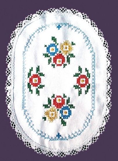 FHA 2100.B2535 ov Deckchen Röschen vorgezeichnet 25x35 cm ovalStoff 10 weiß mit Spitze, 100% Baumwolle, ohne Anleitung