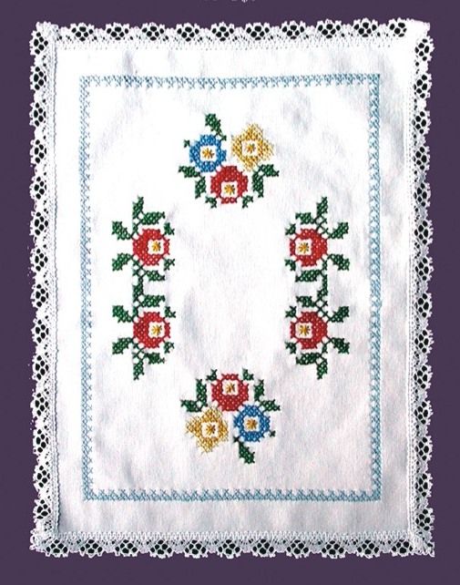 FHA 2100.B3040 Deckchen Röschen vorgezeichnet 30x40 cmStoff 10 weiß mit Spitze, 100% Baumwolle, ohne Anleitung