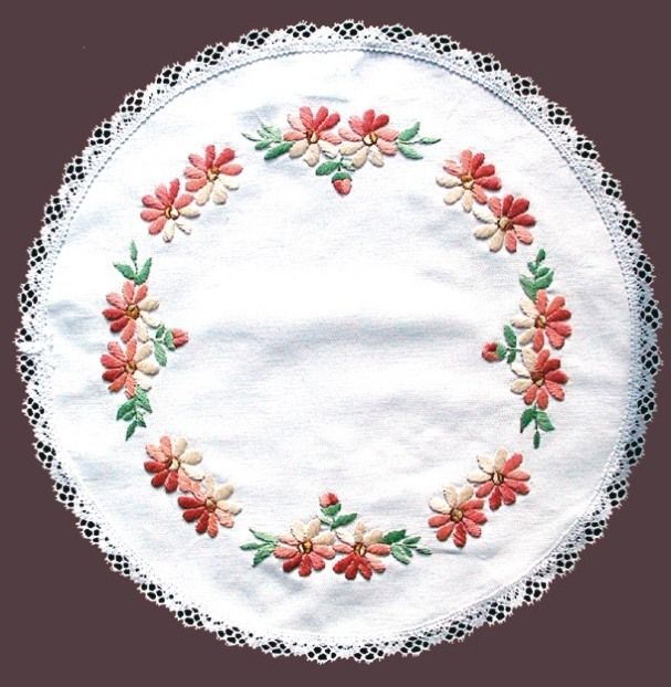 FHA 2102.B40 rd Deckchen Margariten vorgezeichnet 40 cm rundStoff 10 weiß mit Spitze, 100% Baumwolle, ohne Anleitung