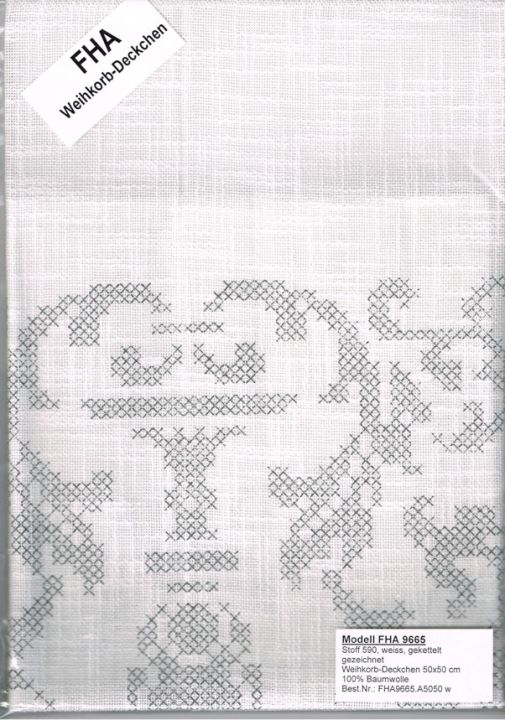 FHA 9665.A5050w Weihkorbdeckchen vorgezeichnet 50x50 cmStoff 590 weiß gekettelt, 100% Baumwolle