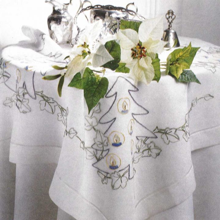 FHA 9563.A9090 Metall-Baum Tischdecke vorgezeichnet 90x90 cm, Spannstich, Hohlsaum-Batistdecke "Parma" weiß, 100% Polyester
