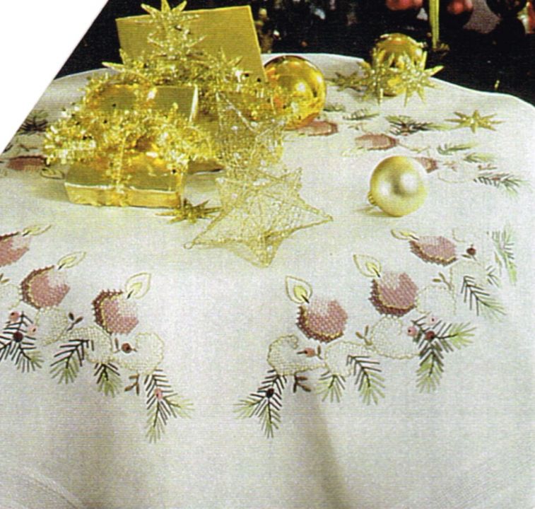 FHA 9820.C9090 Kerzen Tischdecke Komplett-Stickpackung 90x90 cm, Kreuzstich, Fertigranddecke "Toscaa" natur, 100% Polyacryl