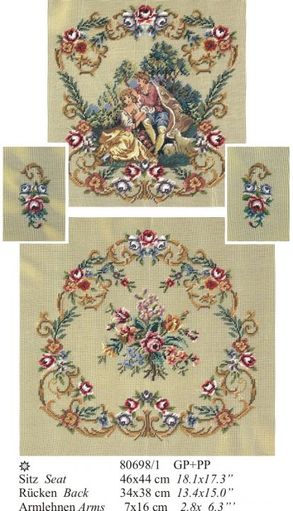 80698/1 mf Sessel 27/36/12/18 inch; Figuren petit point
