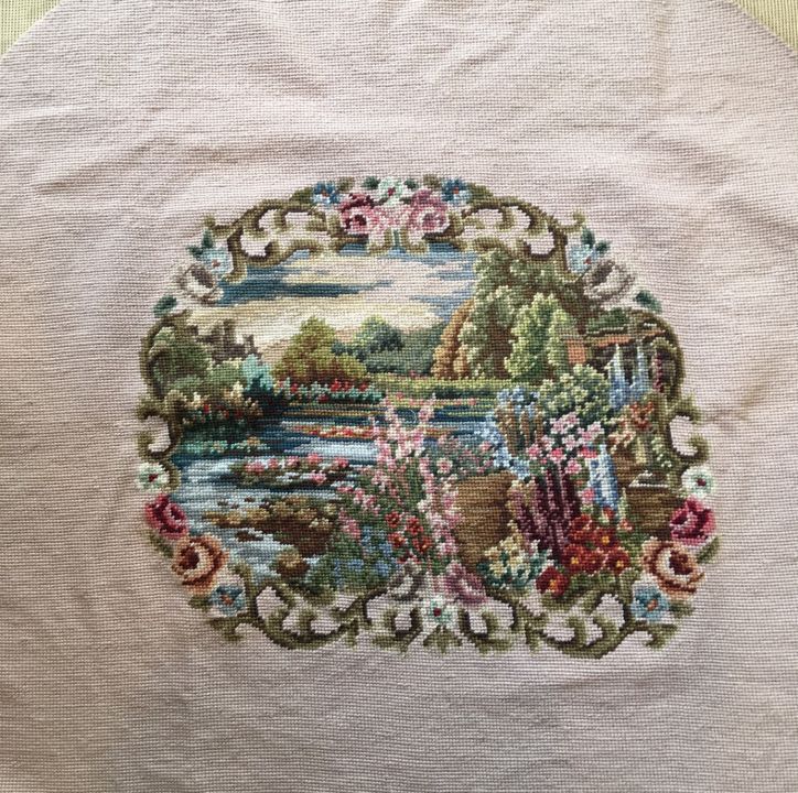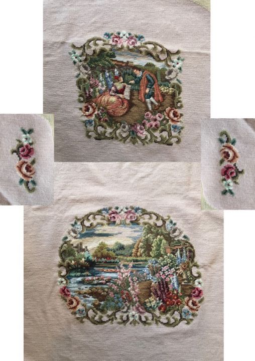 MR 5079 F Sessel fertig gestickt beigeSitz BxT Motiv 43x35 cm Hintergrund 77x71 cmRücken BxH Motiv 30x31 cm Hintergrund 51x54 cmArme BxT Motiv 5x15 cm Hintergrund 16x25 cm