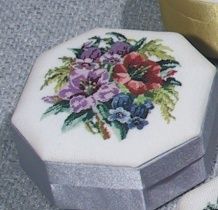 D043 Petit Point Dose 8-eckig, grau Deckel Stramin weiß