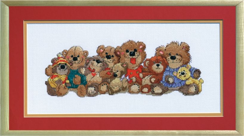 JL 038-0180 Janylnn Stickbild "Bears of Duckport" komplette Stickpackung, Zählmuster, 14-c Aida weiß, ohne Rahmen, 38x17 cm