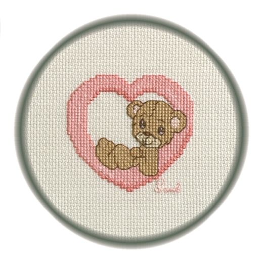 JL 131-0116 Janlynn Stickbild "Du wirst immer in meinem Herzen sein" X-Stich auf Aida Creme, Stickpackung ohne Rahmen, 9,5 cm Durchmesser